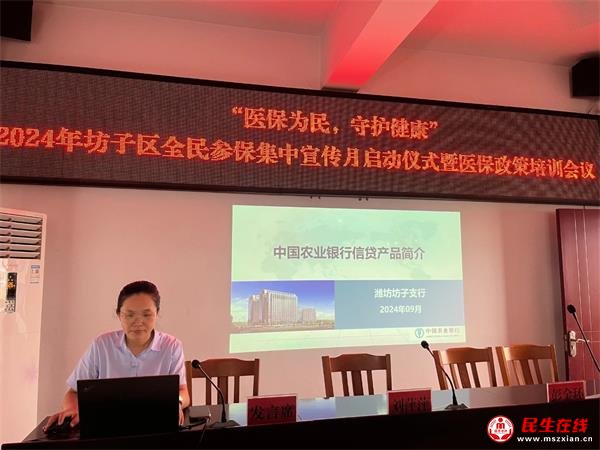 民生在線(mszxian.cn)王文濤訊:為讓廣大人民群眾更加全面了解醫(yī)保政策,推動全民參保計劃深入實(shí)施,2024年9月20日上午,坊子區(qū)在工業(yè)發(fā)展區(qū)舉辦了“醫(yī)保為民·守護(hù)健康”——2024年坊子區(qū)全民參保集中宣傳月啟動儀式暨醫(yī)保政策培訓(xùn)會議。會議由區(qū)醫(yī)保局主辦,工業(yè)發(fā)展區(qū)管委會協(xié)辦,各街道(發(fā)展區(qū))社保所所長、醫(yī)保明白人、部分醫(yī)院、藥店、村衛(wèi)生室、診所、企業(yè)、學(xué)校、社區(qū)(村居)負(fù)責(zé)同志、人保財險、農(nóng)業(yè)銀行相關(guān)負(fù)責(zé)同志參加。培訓(xùn)會議由區(qū)醫(yī)保局劉萍萍局長主持并講話。